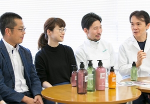 金田 最初の段階でビジュアルとしてコンセプトが共有できたので、商品化に向けて処方をしたり、イメージを膨らませたりしていく中でも、確かに一体感があったと思います。花王の市販品で、ヘアケアとスキンケア、香りも含めて、ここまでトータルに世界観を共有しているブランドって他にないですよね。