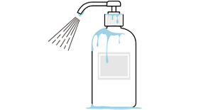 1. プッシュボトルタイプの消毒剤は、手のひらから消毒剤があふれると思うくらいノズルを最後まで押し切ること