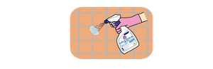 〈便器まわり・床など〉直接スプレーして約5分間おき、拭き取ります。