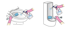 〈便器内〉直接スプレーして約5分間おき、水ですすぎ流します。