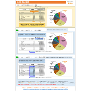 自分のお店の売上を入力して現状把握をしたり、各コストの比率を変更して理想的なコスト構造をシミュレーションしてみましょう!