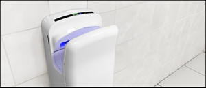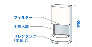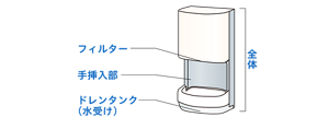 ※ハンドドライヤーの周りにも水滴がとんでいることがあるので、拭き上げる
