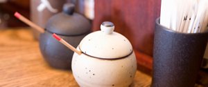カスターセットを数多くそろえるのは費用がかかるため大変ですが、カウンターにはお客様2名に1セット、調味料(カスターセット)を設置することをおすすめします。もちろんテーブルにも各1セットです。