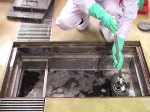 とは言っても、飲食店スタッフができるのは毎日の営業終了後にバスケットの清掃を行うことと、週に1回程度、網を使ってグリストラップに浮かんでいる油脂分を除去する程度のことしかありません。グリストラップの底に溜まった汚泥や排水トラップ内の清掃は、グリストラップ清掃の専門業者に委託をして行ってもらう以外に道はないでしょう。