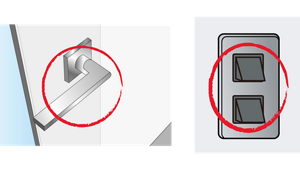 ドアノブ、電気・空調のスイッチなど。