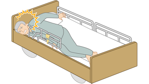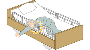 ご利用者様が自分の体を支えられずサイドレール側に倒れそうになっているなど、事故につながる状態になっていないか、定期的に目視確認を行いましょう。