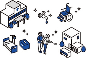 ホテルや病院で、もっと快適に安心してすごしてもらうために。